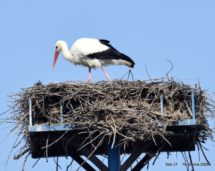 Úvod > Život v městysi > Fotogalerie > Okolí městyse > Čáp v Brodku u Přerova březen 2026 - foto Jan Teimer