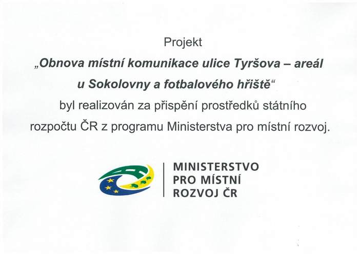 Název projektu: Obnova místní komunikace ulice Tyršova - areál u Sokolovny a fotbalového hřiště
